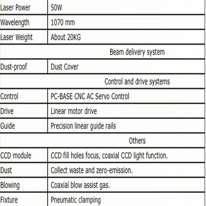 | Laser Power | 50W |
